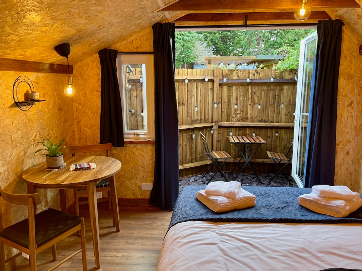 Your own private stylish cabin, own entrance, self check-in. King-size bed, en-suite, kitchenette & private outside space. 8min walk to 2 stations into central London (Waterloo 25min, Wimbledon 15min). Good links to Hampton Court, Kingston upon Thames, Surrey walks and villages. Superloop 7 Bus (SL7) direct to and from Heathrow Airport, 1hour. Very quiet residential road with free parking. No more than 2 guest permitted at anytime on the property. No smoking/vaping on the property.
