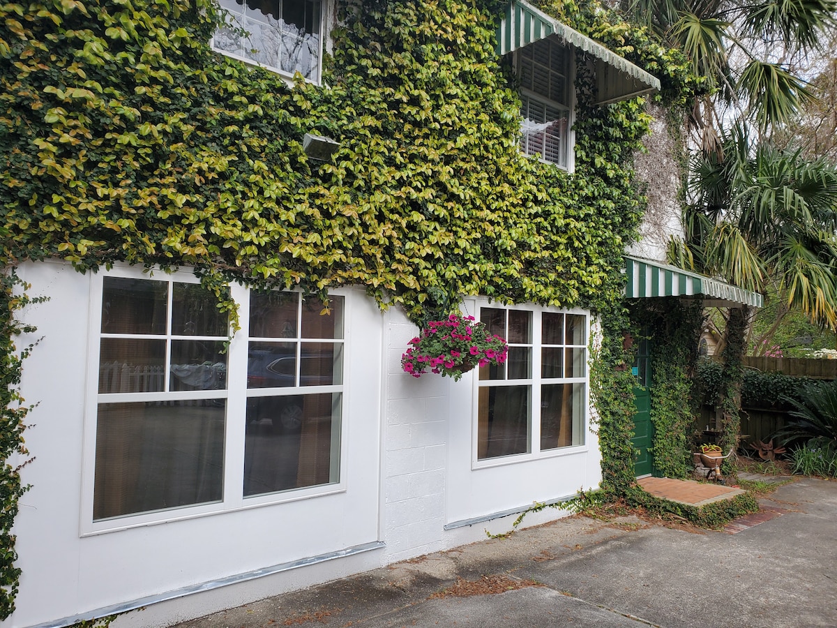 Come relax in Hydrangea House; a chic studio in our backyard for up to 4 guests. Off street parking, clawfoot tub, luxurious linens, full kitchen, washer/dryer, MCM touches, plants & a patio exclusively for your use. It is the perfect place to relax after the beach or adventuring in Wilmington. We proudly offer local coffee, handmade bath salts, & complimentary wine or beer for your enjoyment! With a decade of hosting experience, we strive to offer every guest a 5 star stay in our cozy space