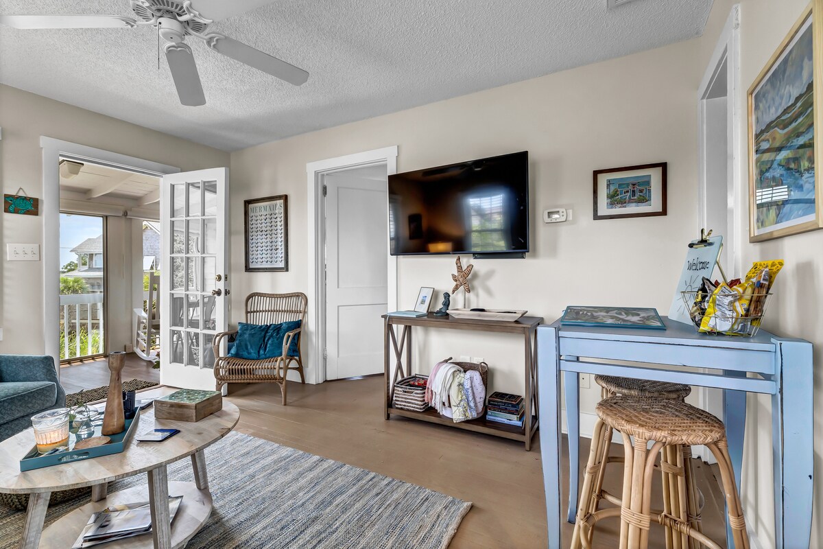 A classic 1946 duplex cottage on the outside, reimagined as a modern coastal retreat on the inside, The Bungalow Loft blends timeless charm with contemporary comfort. This thoughtfully designed space features one bedroom, two additional daybeds in the living area, a full bathroom, a well-equipped kitchen, and a cozy dining nook. Step outside to enjoy expansive outdoor living, complete with a front porch, spacious deck, fire pit, and refreshing outdoor shower.