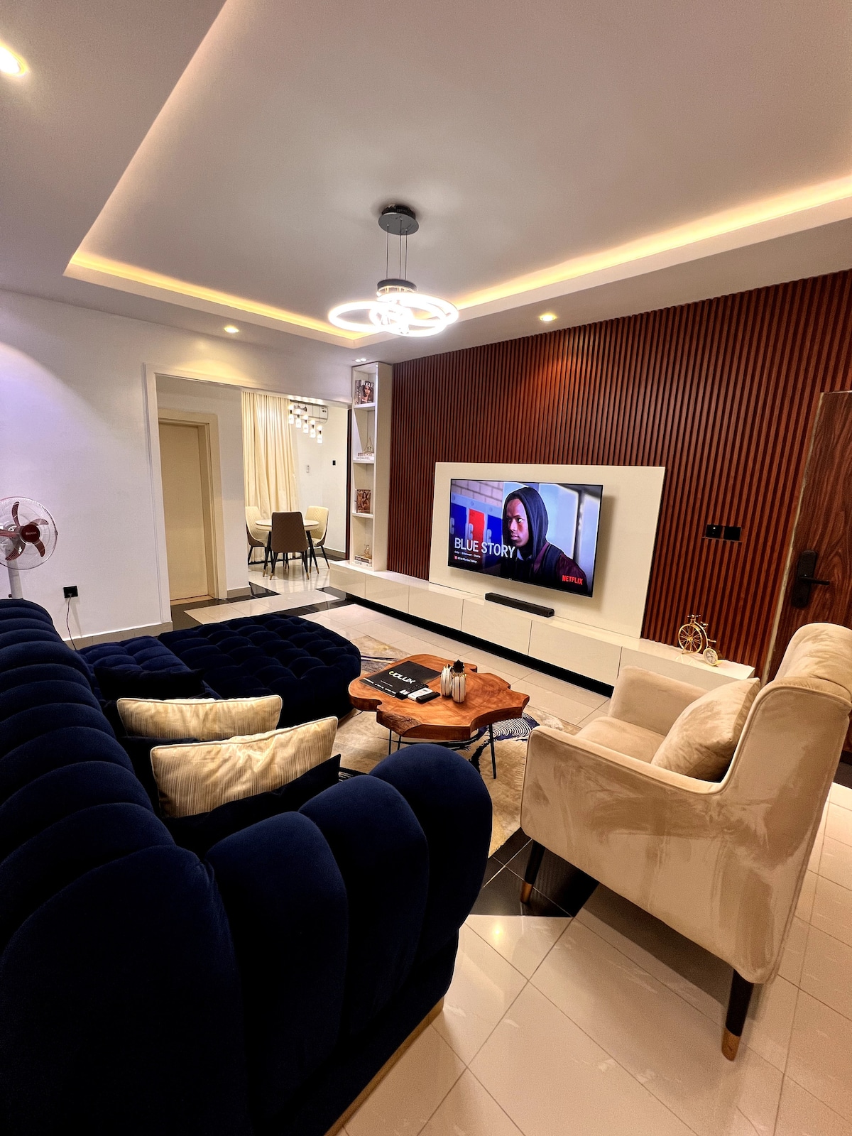 Door with Code Private Balconies Washing Machine Cozy 3 Bedrooms 5 Air-Conditioners Dedicated Workspace Furnished Living Room Fully Equipped Kitchen 4 Toilets and 3 Bathroom Starlink & Fibre Optic Wi-Fi 24/7 Light (Solar | Inverter | Gen) If No Power Grid: Gen: 6am-8am,6pm-12am but inverter always on. Proximity to Markets, Night Clubs, Restaurants and Stores Clean and Fresh Bedding and Towels Serene, Secure, and Beautiful Neighborhood 85”, 65", 50", 50" Smart TV (Prime, Netflix)