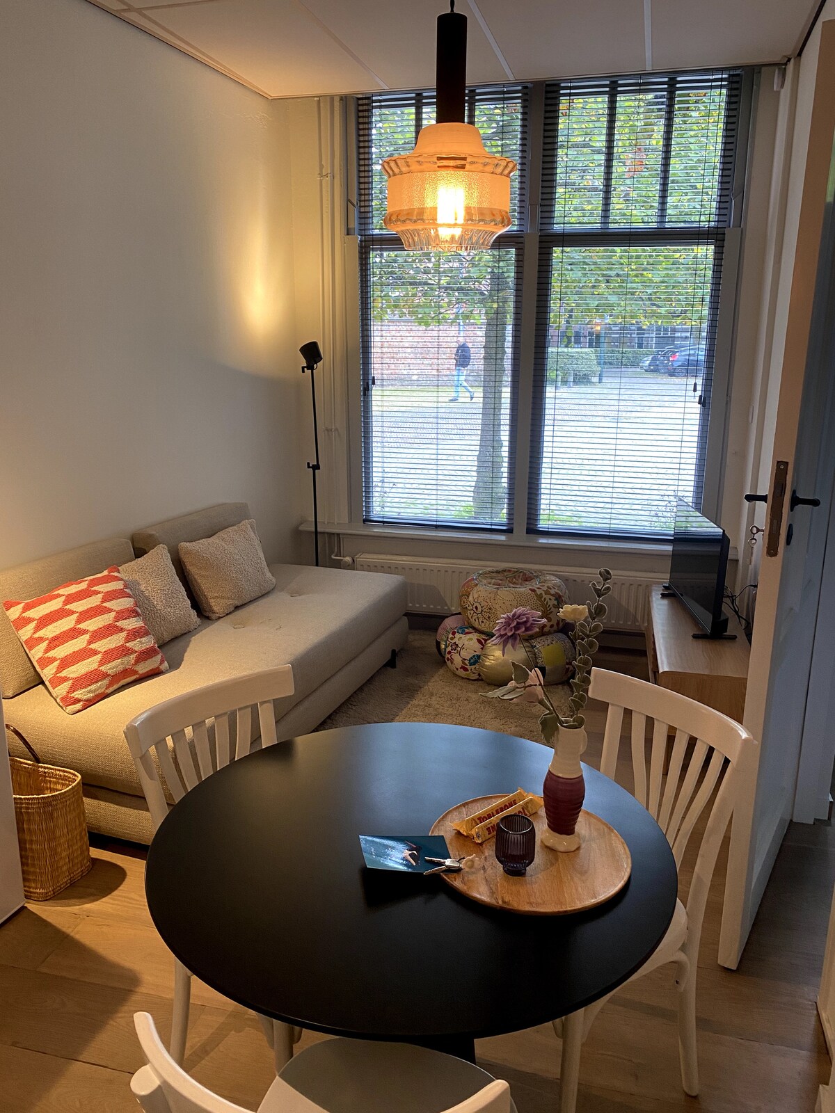 Lodging "Smederij Sterk" is located in the old city forge of J. Sterk. The monumental building dates from 1907 and is located in the middle of the city center, close to museums, restaurants, cozy shopping streets and the station. The accommodation has its own entrance, a living room with its own kitchen, a bedroom and a private bathroom with shower and toilet. The lodging overlooks and borders a beautiful square where you can also sit outside.
