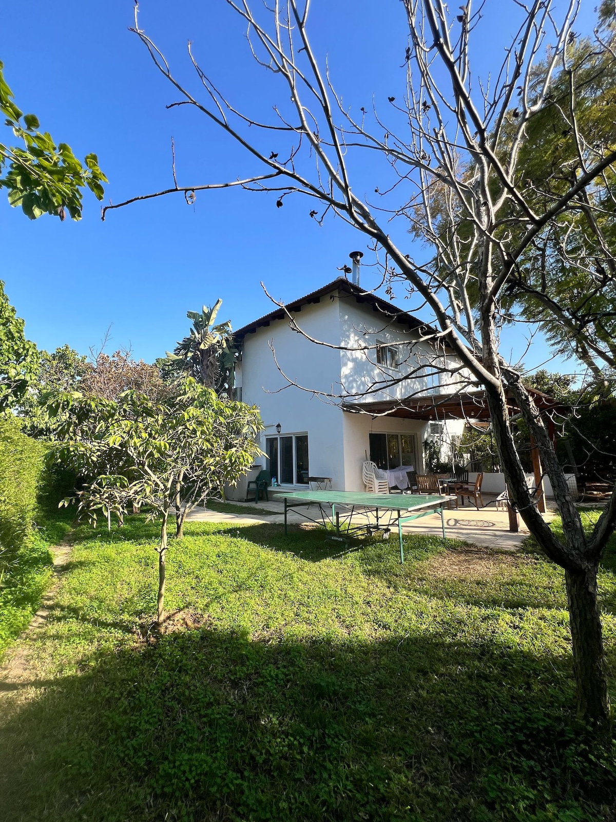 Enjoy a unique quiet environment within the city. With a private entrance, our guest suite is on the first floor, overlooking a beautiful patio, lawn and garden for relaxing, dining and recreation. Enjoy organic vegetables and fruits from our garden in season. Free on street parking . Easy access to Tel Aviv, Jerusalem and TLV BG Airport. Car rental and public transportation 5 min walk. Mini market 1 min walk. Supermarkets 10min away. *We have an in-house safe underground shelter (Mamad ממ״ד)*