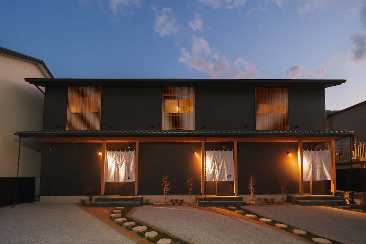 Located 30-second walk from Yufuin Station and a 1-minute walk from Yufuin Bus Station. It’s a new two-story house completed in April, 2022. Max 4 people can stay and has large outdoor private Onsen. 1F – Private Onsen, living room, kitchen, bathroom, toilet 2F - 1 bedroom (1 queen size bed), 2 bedroom (2 semi-double beds) There are washbasins and toilets in each room. FREE high-speed wifi. Guest with 2 or less, please let us know which room you want to use (queen or twin)