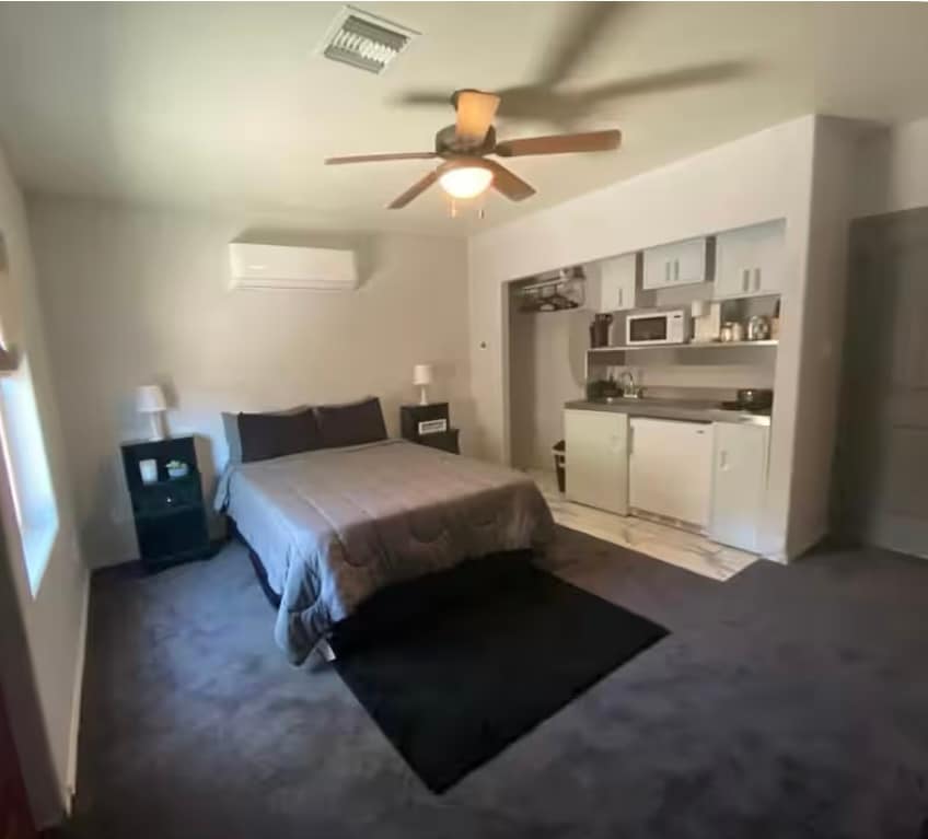 ✨ Cozy private studio with small patio, just steps from YRMC! ✨ This charming studio is attached to the main home but offers complete privacy with its own private entrance. Relax in your private outdoor patio with seating area, a fully equipped kitchen with all the essentials, a walk-in shower with hot water, high-speed WiFi, and all the comforts to make you feel at home. 🚗 Designated parking right in front for easy access. Perfect for short or extended stays – your home away from home in Yuma.