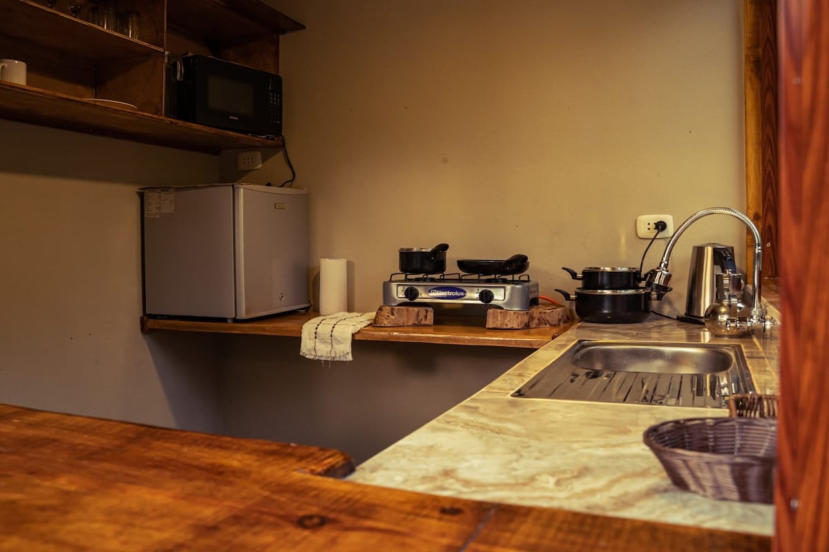 Private minimalist-style cabin located near El Oconal Lagoon in Villa Rica. It is an ideal retreat for those looking to disconnect and enjoy nature in a peaceful, pollution-free environment. It offers privacy, comfort, and a strategic location—far enough from the noise yet with easy access to shops and restaurants. Perfect for relaxing, exploring the surroundings, and experiencing an authentic connection with nature.