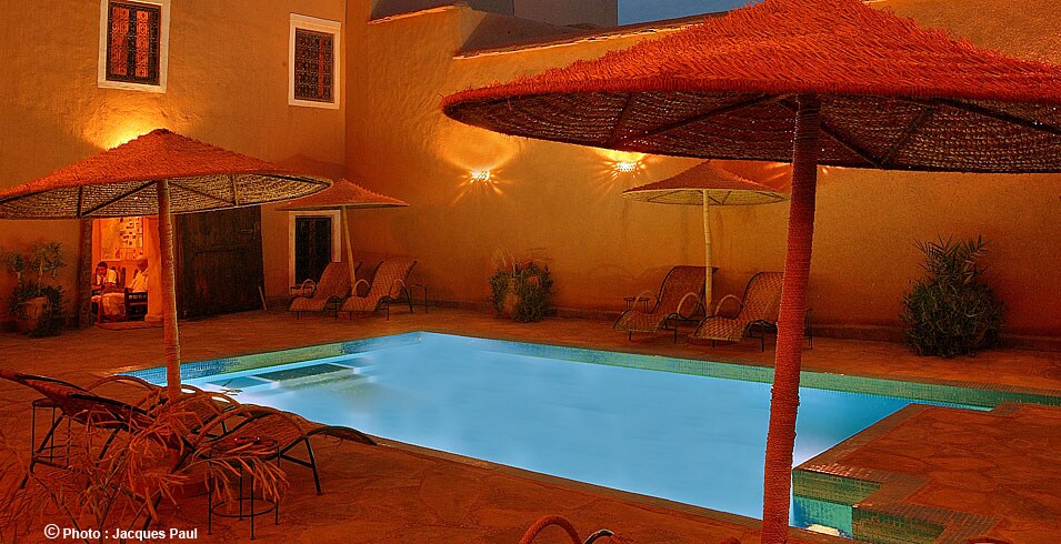 Discover our inn, a haven of peace in the heart of the palm grove, where calm and serenity await you. A unique place to unwind, with typical earthen rooms and bungalows. At night, let yourself be enchanted by the stars, near the fire, to the sound of the guitars and djembes of the Sahara. We will delight you with delicious tagines and nomadic breakfasts. We also offer outings in the desert, aboard our 4x4s or on the back of a dromedary, for an unforgettable experience.