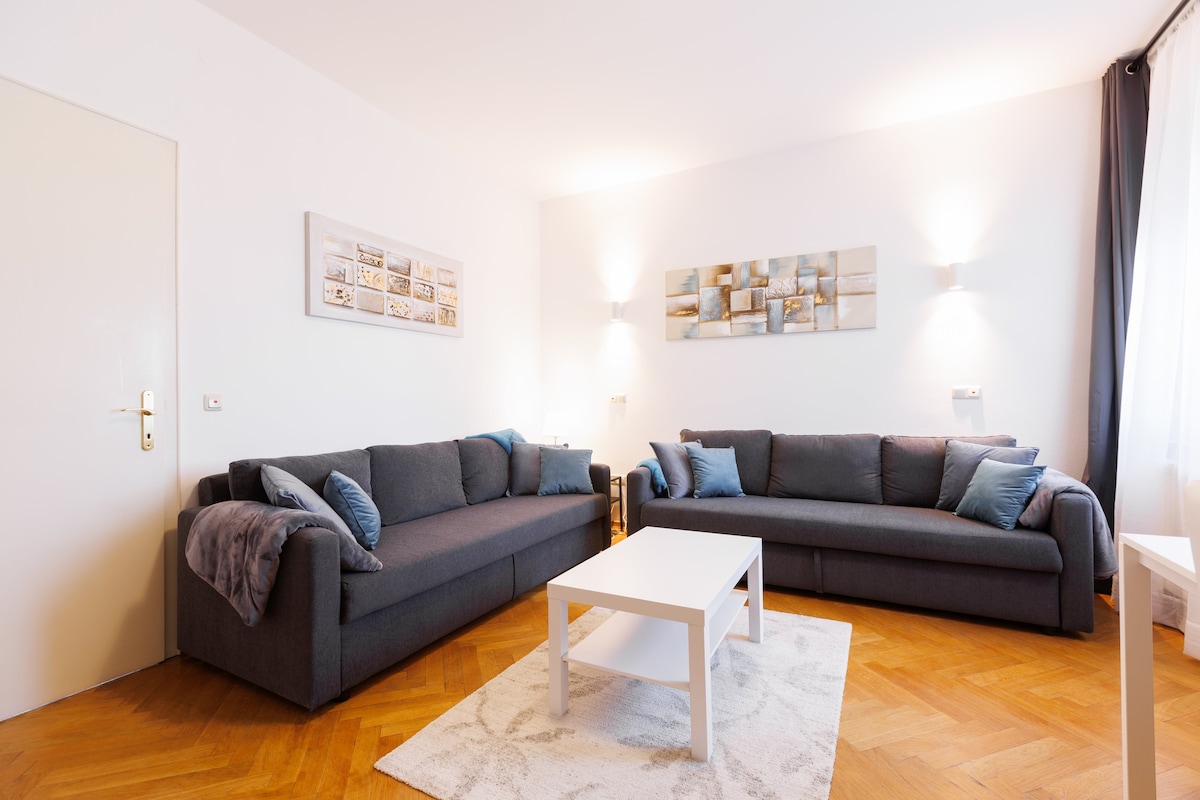 This beautiful Sapphire apartment is in the very center of Zagreb, 5 minutes walking distance from the Main square. If you come for pleasure, business or just for shorter stay you will enjoy quiet rooms and nice spots around. We prepared unlimited wireless internet connection, LED 50" TV in the living room and LED 32" in the bedrooms with more than 100 satellite programs and air conditioner on all the rooms. Two beautiful bathrooms will give you necessary comfort after long day.