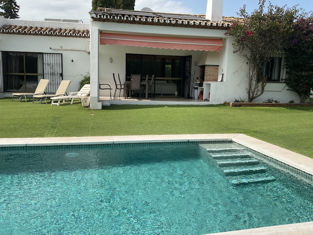 Beautiful villa in the best location in Marbella: 4 minutes driving or 20 minutes walking to Puerto Banus and its beautiful beach, 100 meters from the big supermarket Mercadona and many restaurants and pubs, and next to a bus stop. Private and quiet, it has a garden and swimming pool with a nice view of the surrounding mountains. Decorated with taste and with all the amenities you need, it is perfect for families or a group of friends. The sofa-bed allows for a 9th person to sleep if necessary.