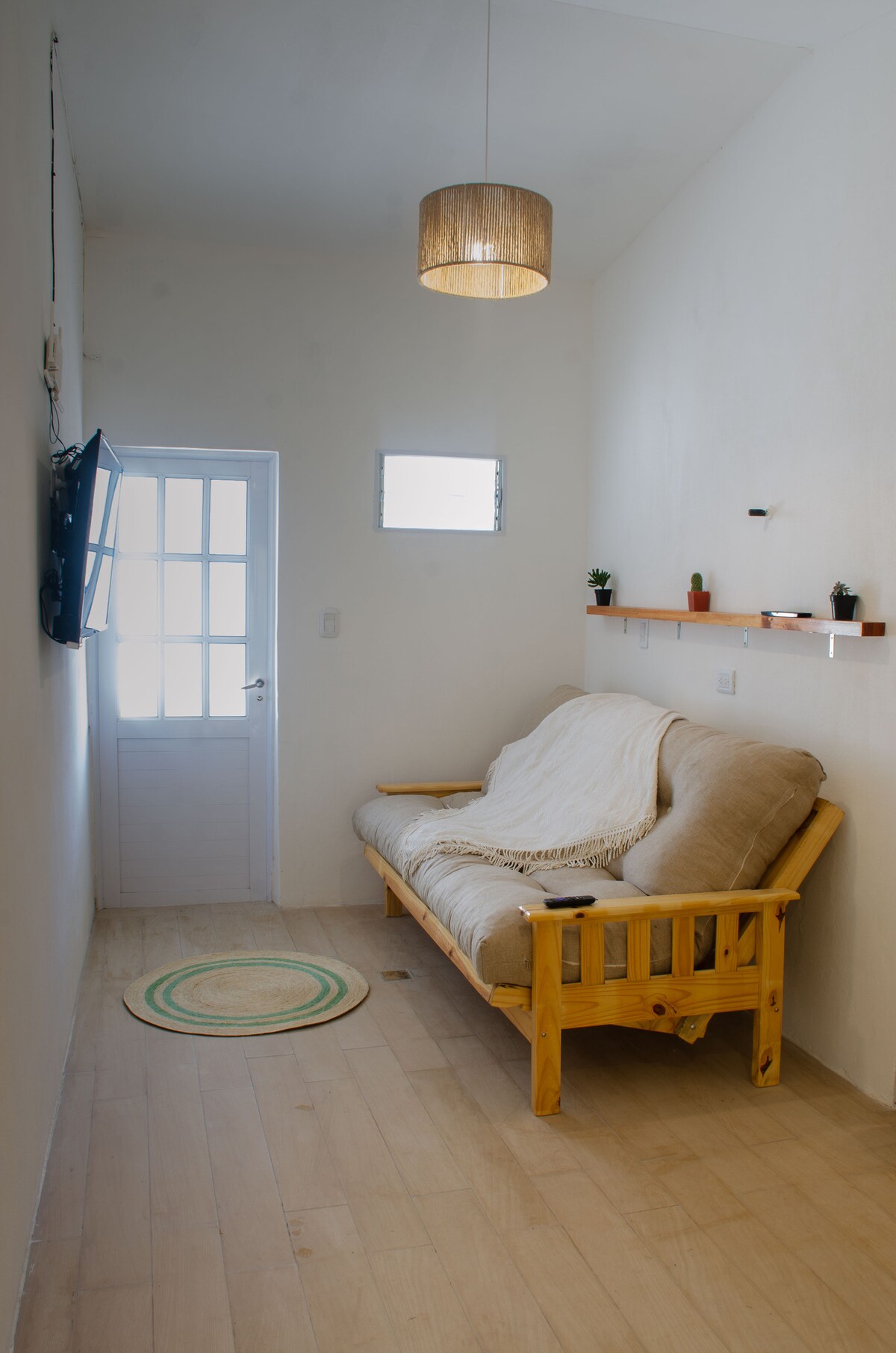 We invite you to enjoy a beautiful stay in this modern studio apartment. Ideal for couples or solo travelers. Located in the center, it offers proximity to the main tourist spots and entertainment areas. Just 8 minutes by car from the Estadio Único, 1 minute walk from Parque Aguirre, 2 minutes walk from the bars of Avenida Roca and 5 blocks from the main square. Ideal for those who want to explore the city on foot and enjoy the local cuisine, bars and culture.