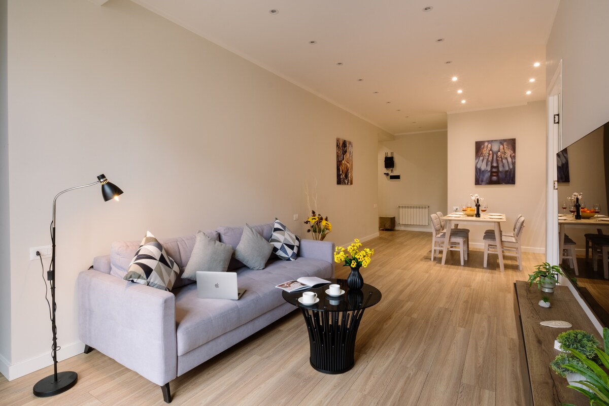 Newly renovated Luxury apartment with King Size Bed size 180x220cm / 76" X 80" and Brand new Italian mattresses Friuliflex (see pictures); all new furniture. 50 Mbps internet, super clean with fully equipped kitchen. We also provide cooking basics (sugar, salt, oil, pepper etc) for the beginning of your stay so you do not have to worry about these essentials when you check-in. LG 43" HD Smart TV connected to the internet.
