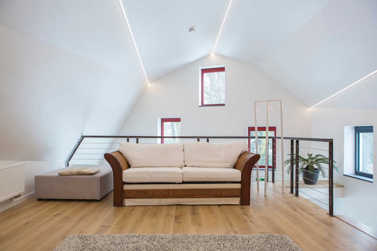Our apartment is on the second floor of our house, situated in a calm neighborhood, built in the twenties of last century. It is a large space with a separate bathroom and and sleeping room. The living room with sofa and desk is on the south side of the studio, from where you can see the gardens behind the houses. The whole space is open and light.