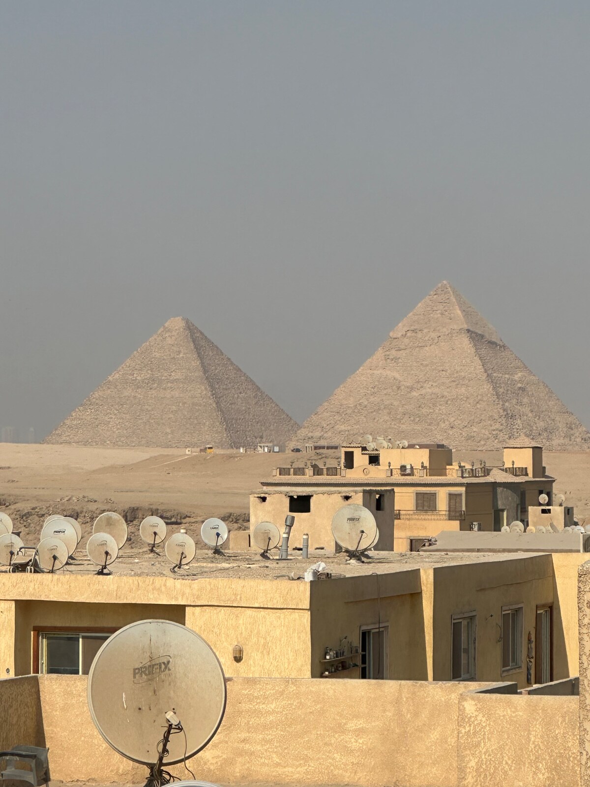 Just a 5-minute walk from the entrance of the majestic pyramids Gate , this unit is located in a newly built building, nestled in an authentic local neighborhood that breathes the life and authenticity of Cairo, while ensuring a safe experience.. In this authentic corner, the nearby streets retain their traditional charm, even if they have not yet been paved. You can find horses and camels on the street