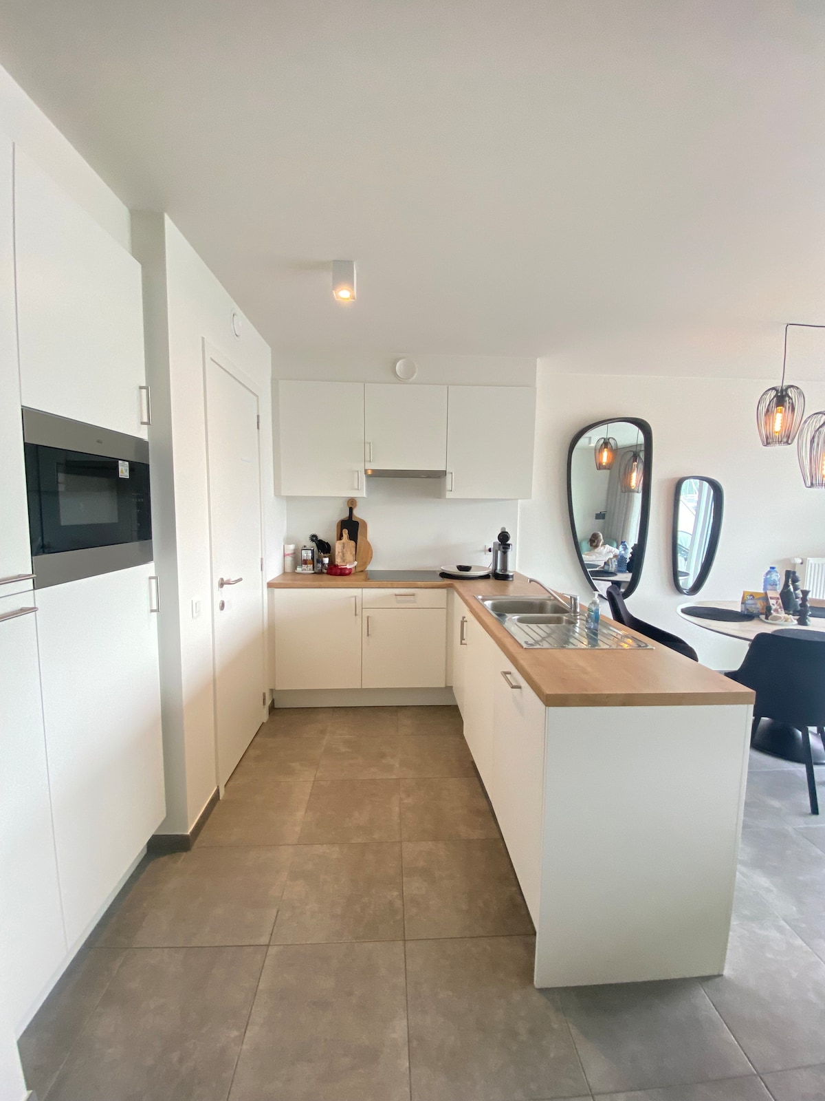 Our cozy and stylishly furnished apartment is the perfect base for your relaxing holiday on the Belgian coast. Just 20 minutes from Bruges city center, the location is truly unbeatable. Just a few meters from the apartment, you'll find the expansive sandy beach of Zeebrugge. Whether you're looking for a romantic getaway or an adventurous surfing trip, our apartment offers everything you need for an unforgettable stay on the Belgian coast. First floor, 2 terraces