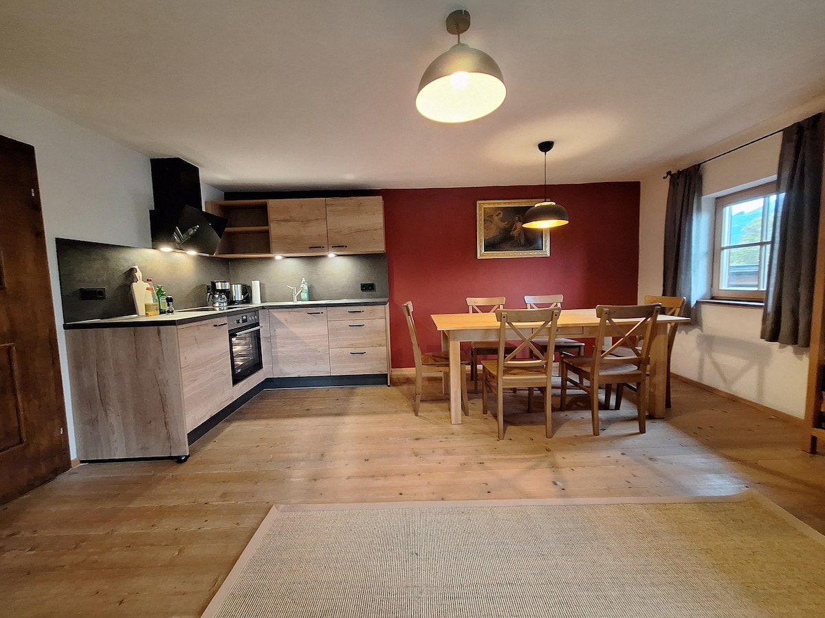 Cozy, newly renovated apartment on the farm. Space for 5 people. Magnificent views of the Hahnenkamm, the Kitzbüheler Horn and the Wilder Kaiser. Distances (by car) Supermarket: 5 minutes Restaurants: 5 minutes Kitzbühel and St Johann ski resorts: 10 minutes Ski resorts Wilder Kaiser, Fieberbrunn, Steinplatte 15 to 20 minutes Gas station: 5 minutes Enjoy the time here with us, surrounded by hiking and biking trails, small lakes and forests. Looking forward to seeing you soon😊