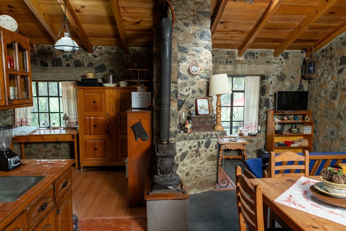 Comfortable and cozy stone cabin. Just 5 minutes from the town of Tres Marías (at kilometer 54.8 of the Mexico-Cuernavaca federal highway). It is an ideal place to find peace and tranquility by being in contact with nature due to the pleasant outdoor spaces and the views of the place. It has a terrace with a barbecue, ideal for spending time with the family. Many people use the place to do "home office" as it has internet and the necessary conditions to concentrate.