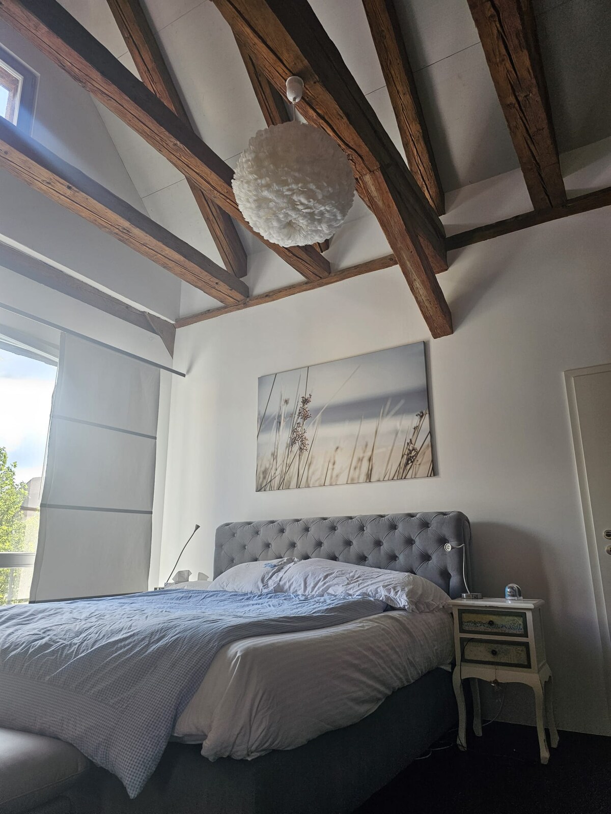 This loft is 200 square meters and is located in the attic of a 230-year-old winegrower's house. The loft was lovingly completely renovated in 2010.