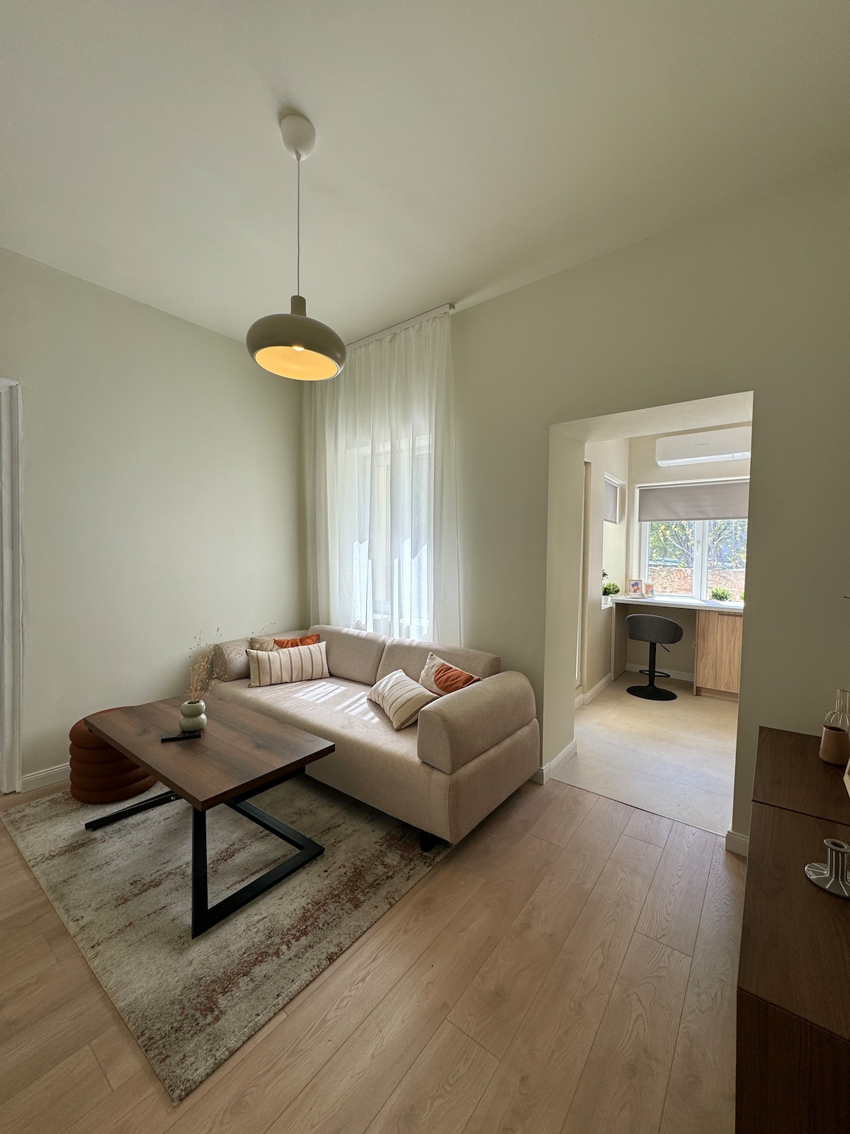 A comfortable and quiet apartment designed for easy living during the winter season. – 20 min walk to centre & beach – Cozy living room with ambient lighting & 75″ TV – Fully equipped kitchen for home cooking – Comfortable bedroom with its own TV – Inverter AC in every room for steady heating – Fast Wi‑Fi, dedicated workspace & washer‑dryer for longer January stays Ideal for longer winter stays, remote work, and guests seeking peace and privacy.